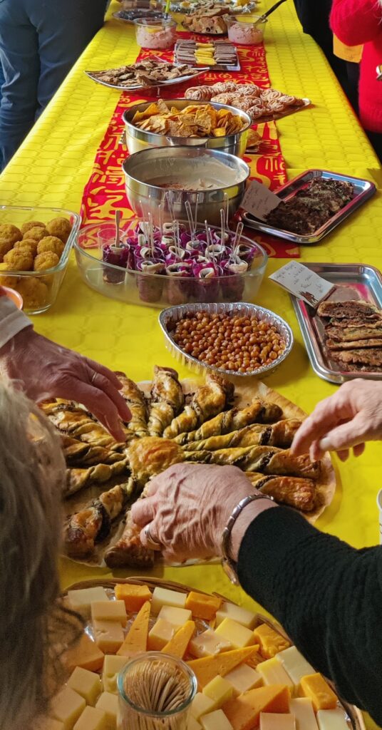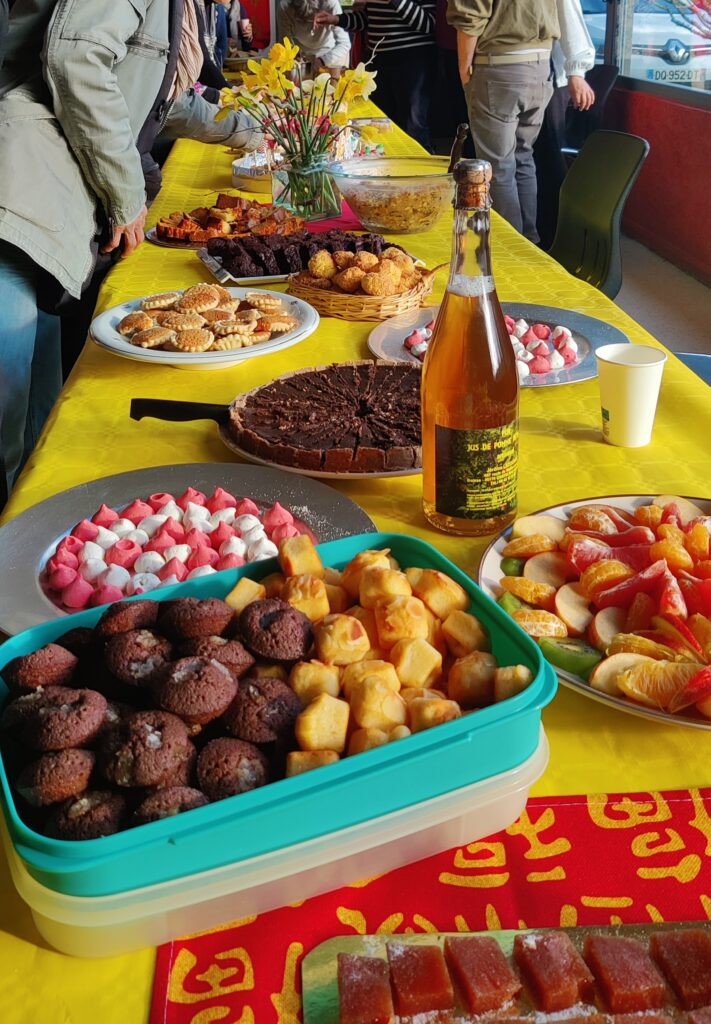 Un beau moment de convivialité avec pour finir un superbe buffet rassemblant les mets concoctés par les participants, jus de pommes chaud, jus de fruits et pétillant.